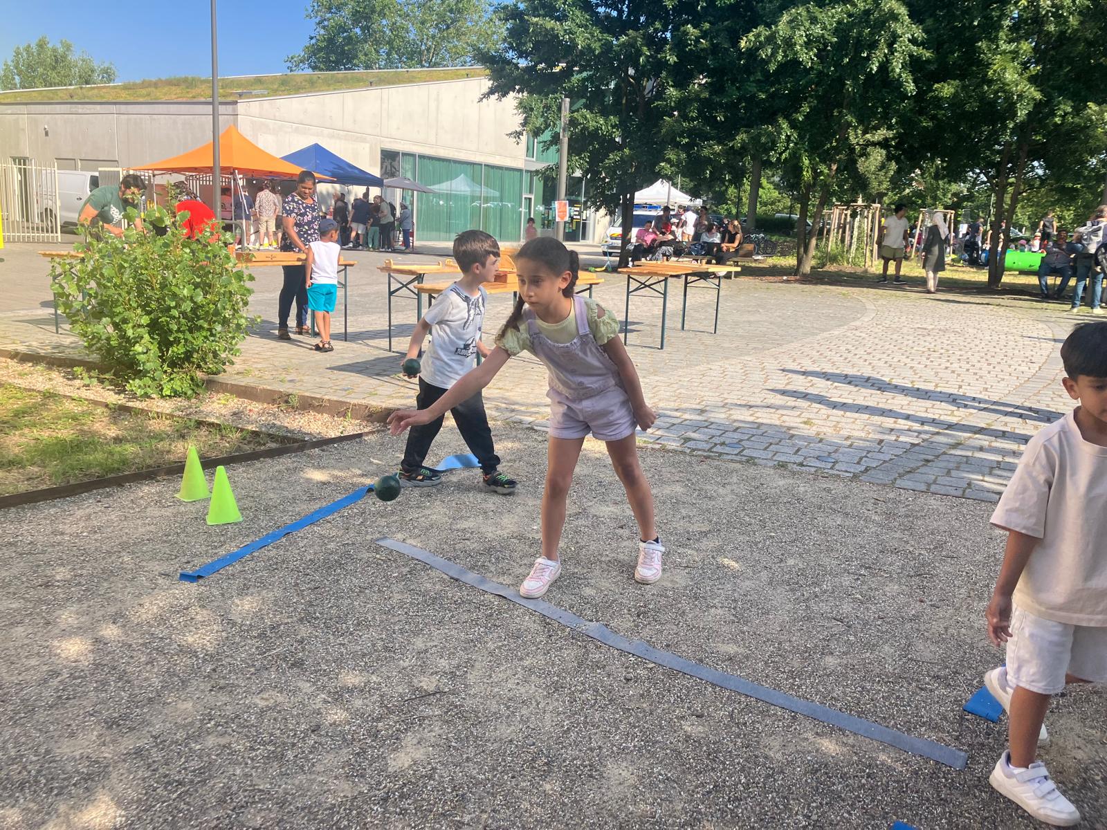 Sous un soleil estival, le terrain de boule lyonnaise de la ville s’est transformé en un véritable terrain de jeu.